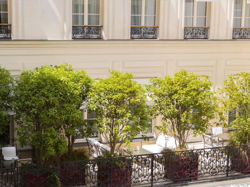 Chaque Junior Suite Prestige a son charme, chacune a sa personnalité. Certaines donnent sur le patio, d’autres sur la rue du Cirque, si radieuse sous la lumière d’été du matin… Des photos de famille en noir et blanc de la famille du propriétaire vous souhaitent la bienvenue et voisinent avec des tableaux contemporains, des bronzes anciens chinés partout en France… Dans cette atmosphère élégante et sereine, la vie parisienne semble si douce que l’on a parfois du mal à sortir de chez soi !