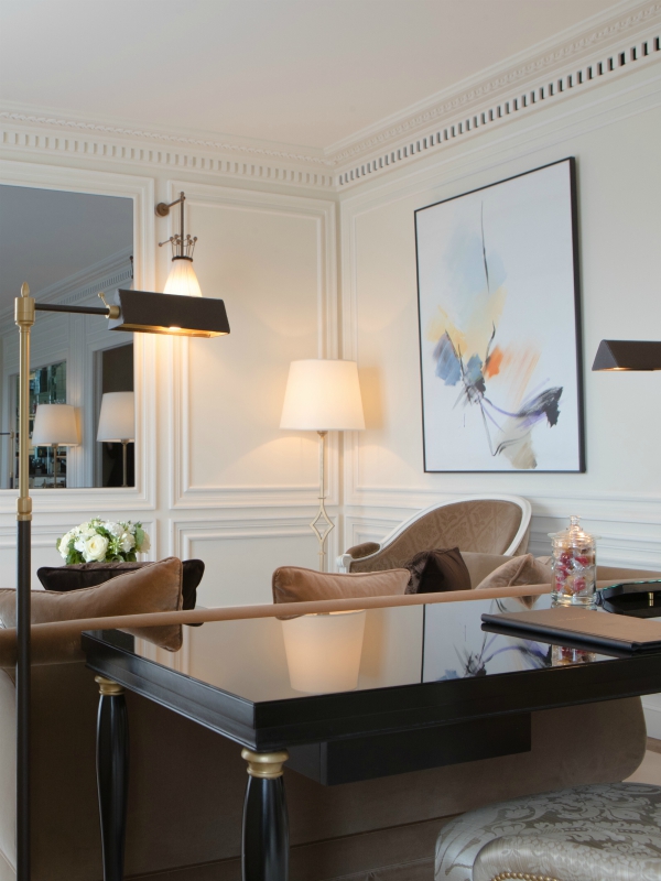 Comme le monument emblématique dont elle porte le nom, la suite Grand Palais consacre un art de vivre « en grand » rare à Paris. Dès les premiers pas, on se retrouve instantanément dans un très bel appartement parisien de la Belle-Epoque : une époque où l’on ne comptait ni les mètres carrés, ni les volumes, tout simplement extraordinaires. En 1900, le Grand Palais avait été construit pour magnifier « l’art français » à l’Exposition Universelle. Aujourd’hui, cette suite rend elle aussi hommage au patrimoine historique de la France, avec son mobilier Napoléon III d’époque, ses antiquités amoureusement chinées au fil des années, ses œuvres anciennes ou contemporaines jetant un pont fascinant entre les siècles. Invitée de marque, la Tour Eiffel se laisse admirer depuis le balcon, tout comme les majestueuses verrières du Grand Palais. Dès que la nuit tombe, la grande dame illuminée offre un spectacle dont on ne se lasse pas.
