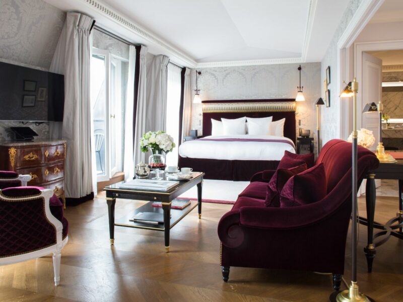 Cette suite de plus de 200 m² est composée de 2 salons généreux, de 2 bars privés, d’une cave à vins proposant des Grands Crus, de 2 chambres dotées chacune d’un grand dressing et d’une salle de bains tout en marbre de Carrare offrant une baignoire avec vue sur la Tour Eiffel ou le Grand Palais, une douche à l’italienne et une double vasque.